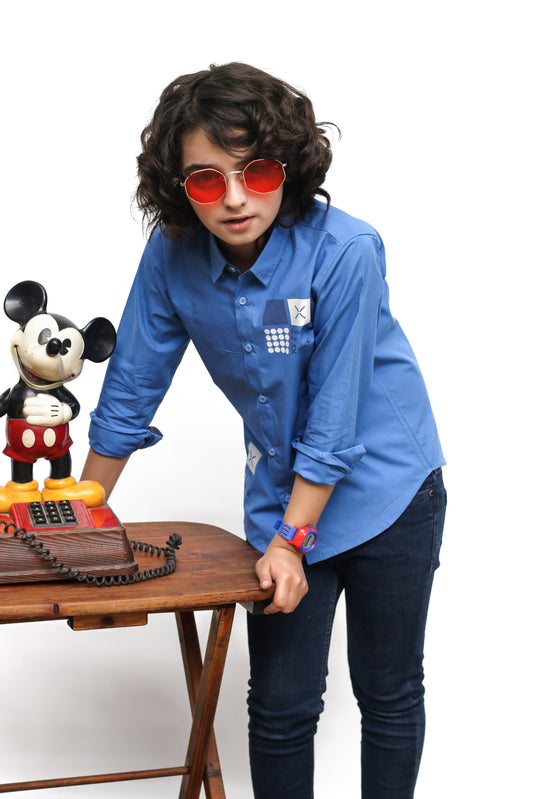 BLUE AND WHITE LINNING SHIRT FOR KIDS
