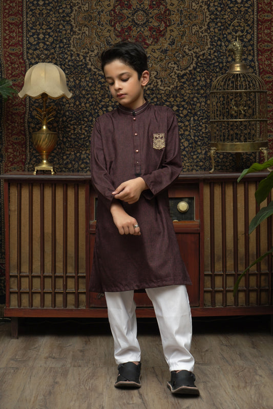 CHOCOLATE BROWN EMBROIDED KID'S KURTA