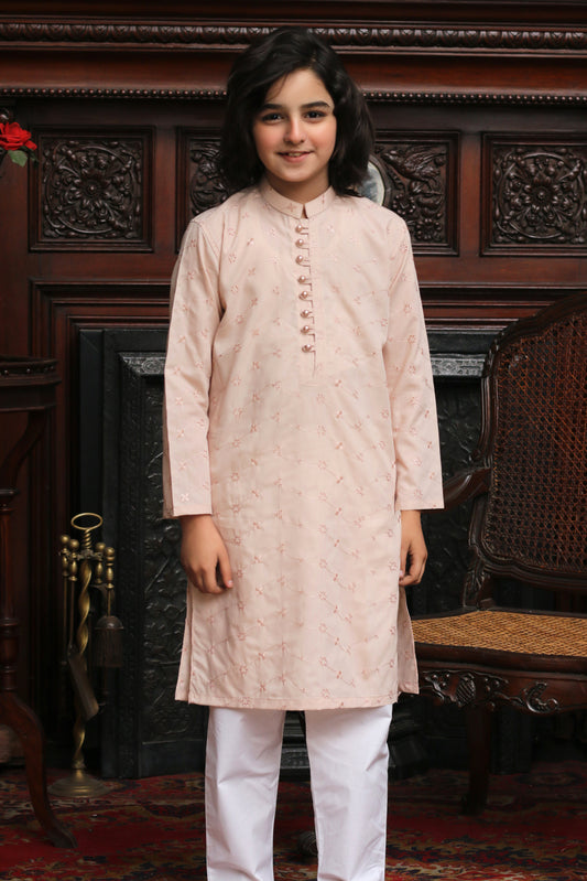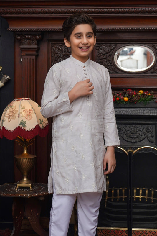 OFF WHITE CHICKEN LINEN KID'S KURTA