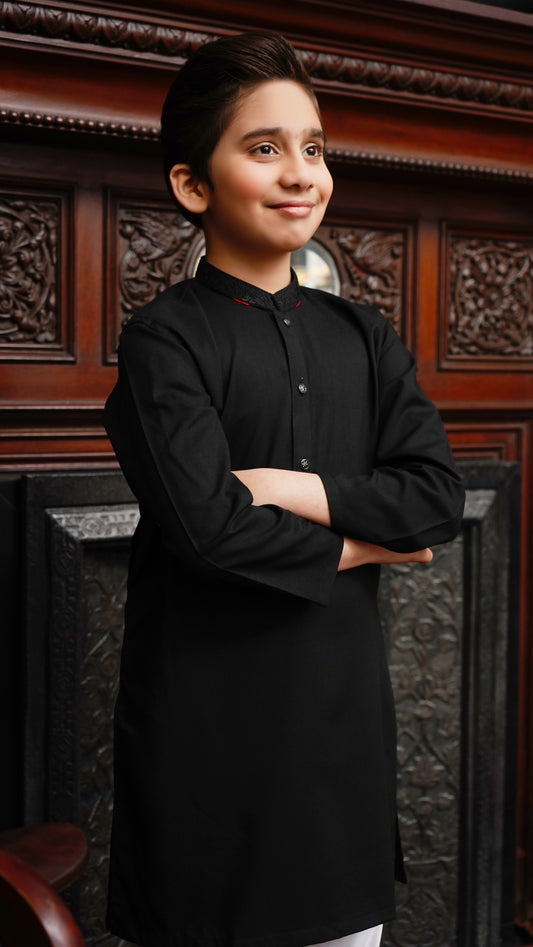 Sold outJET BLACK KID'S WASH & WEAR KURTA