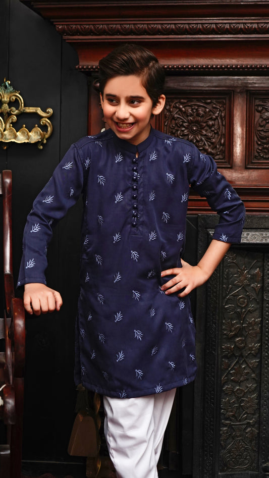 Sold outNAVY BLUE EMBROIDED KID'S KURTA