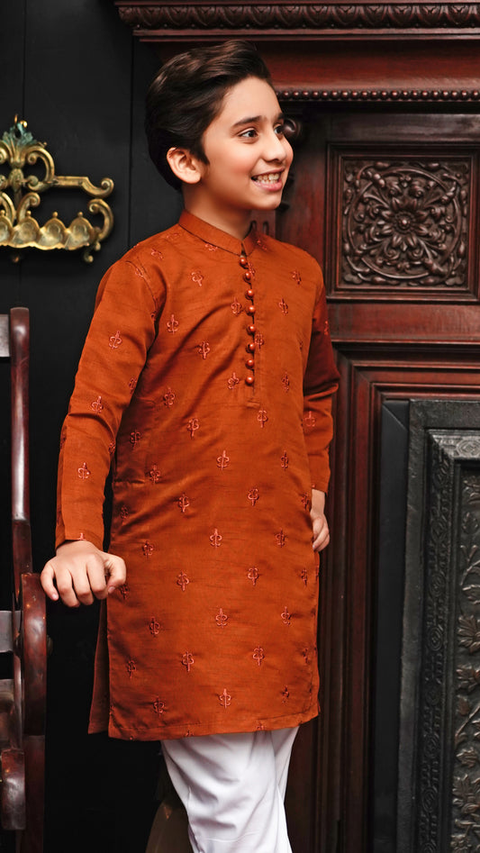 Sold outRUST BROWN EMBROIDED KID'S KURTA