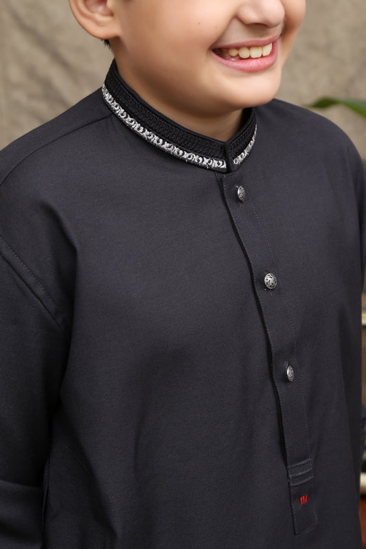 JET BLACK COLLAR WASHING WEAR KID'S SHALWAR KAMEEZ