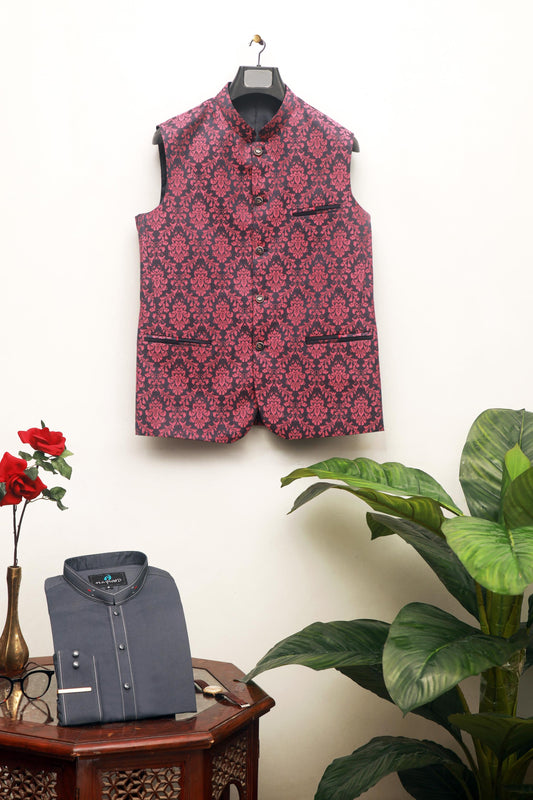 RED / PINK EMBROIDERY JAMAWAR MEN'S WAIST COAT