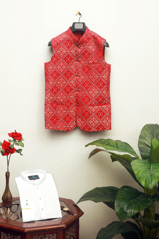 RED EMBROIDERY MEN'S WAIST COAT