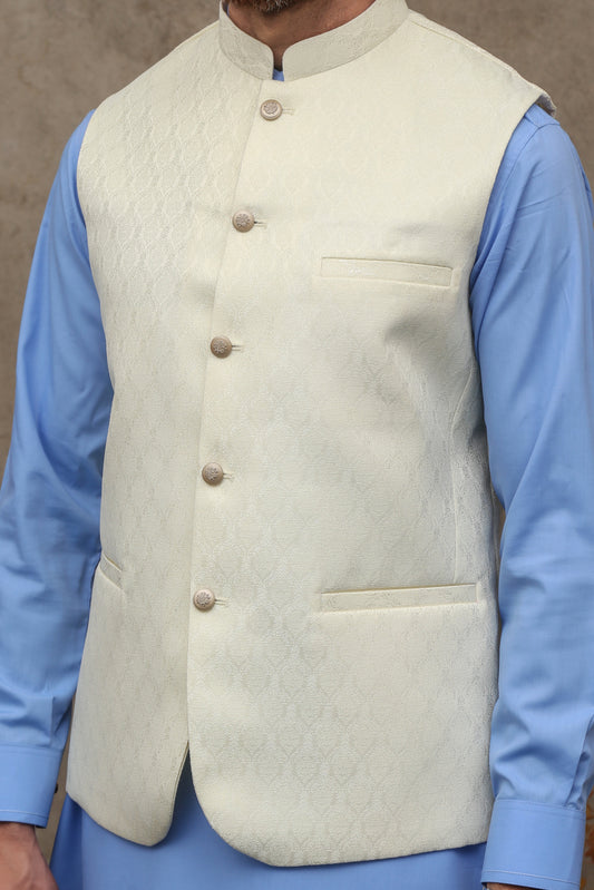 OFF WHITE CREAM JAMAWAR MEN'S WAIST COAT