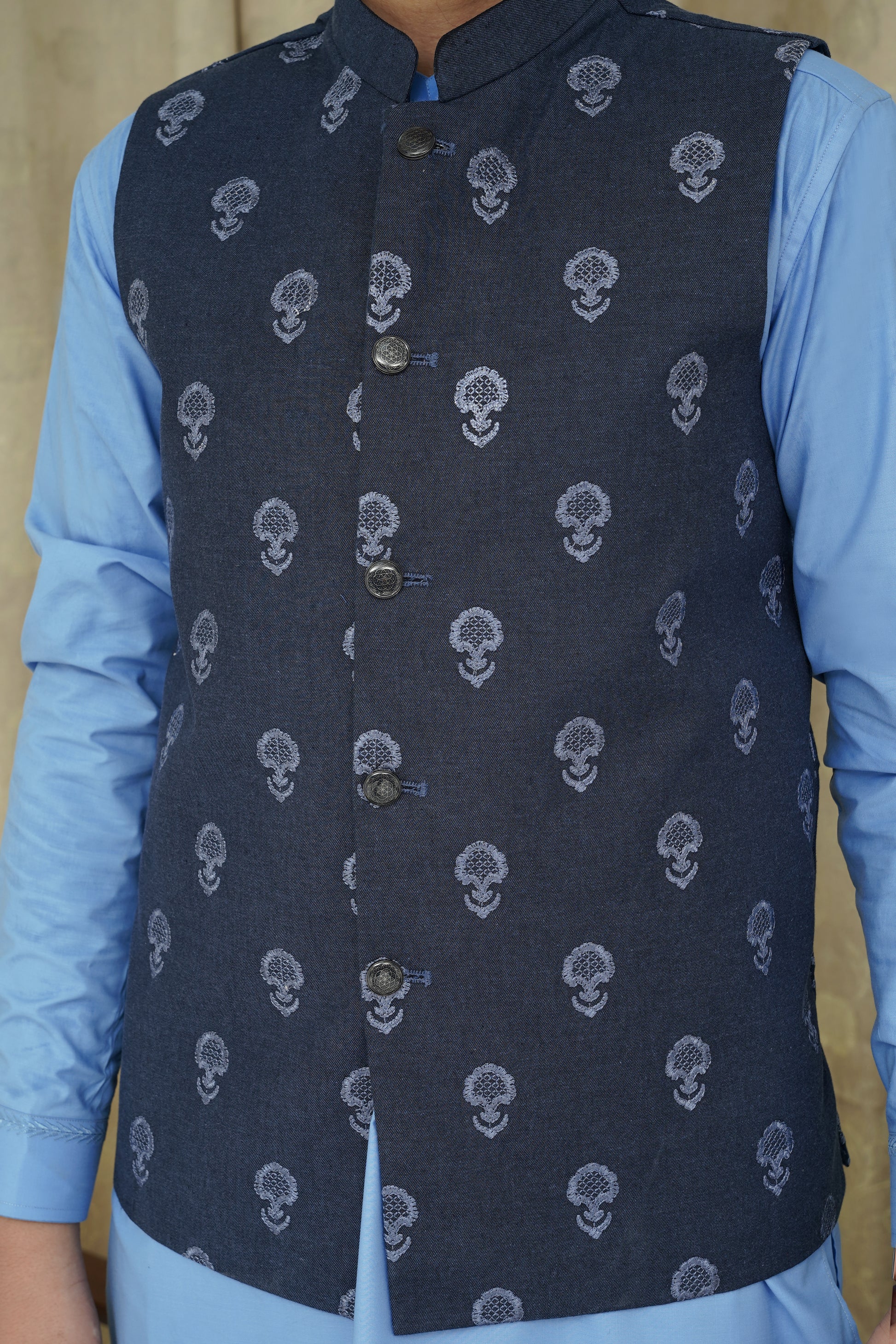 BLUE EMBROIDERY BLUE'S WAIST COAT