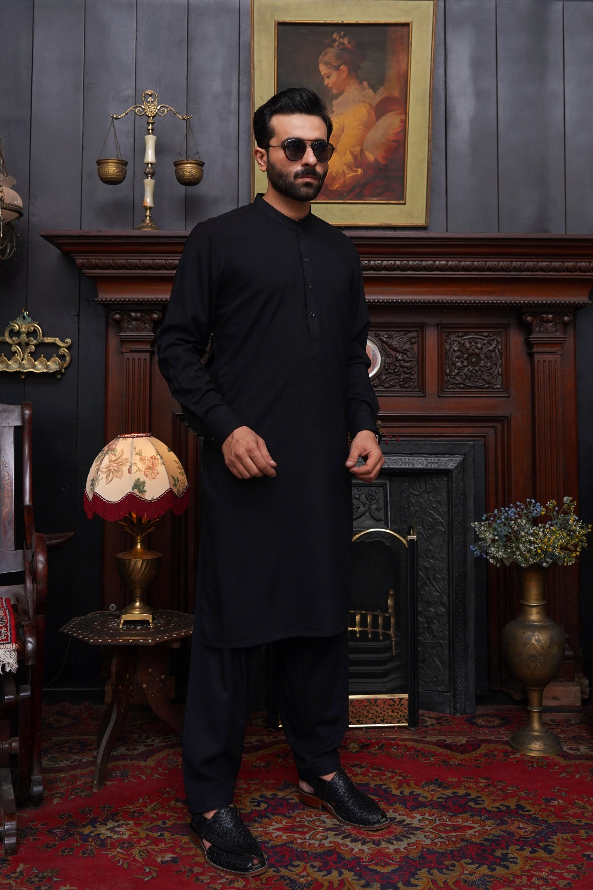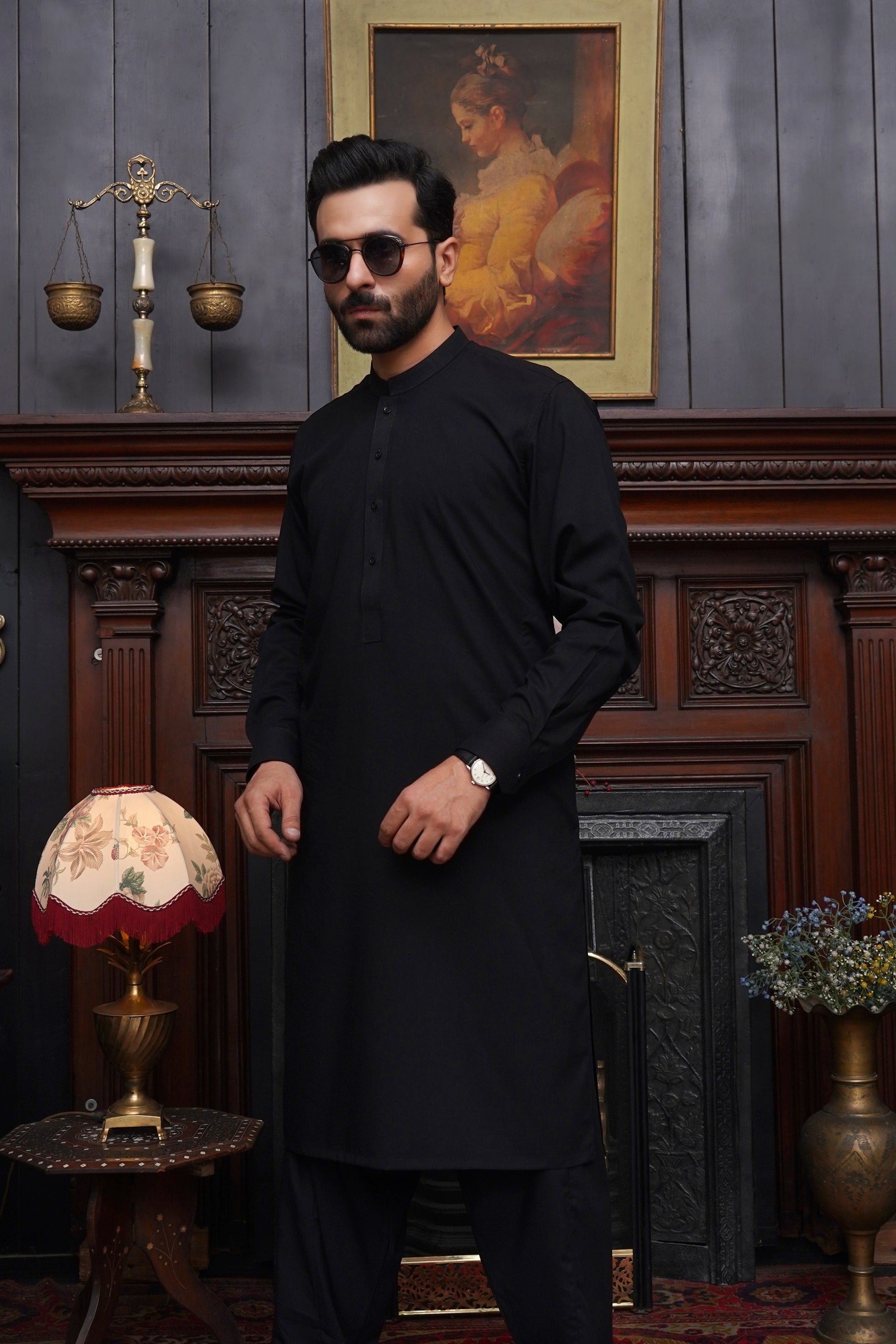 JET BLACK WASH & WEAR MEN'S SHALWAR KAMEEZ