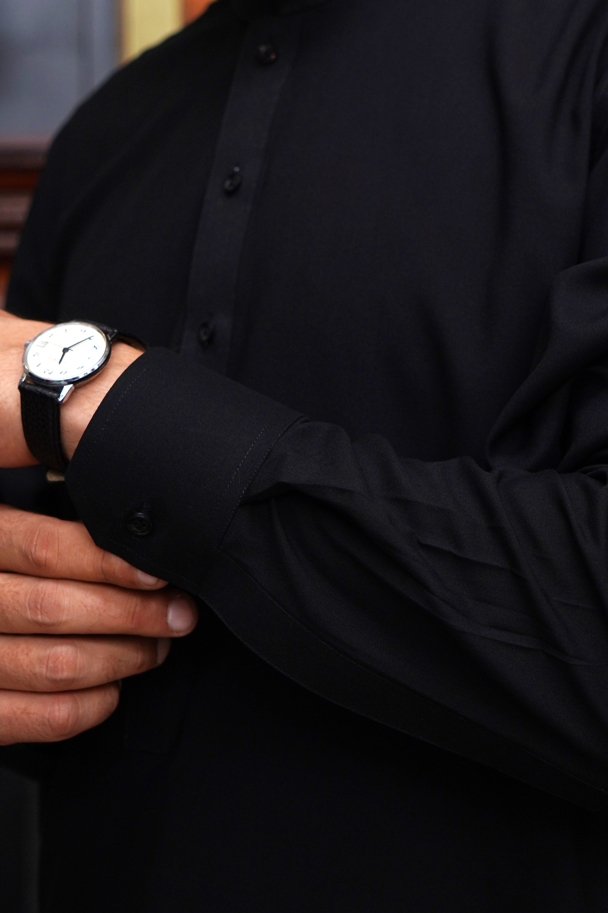 Introducing our Jet Black Wash & Wear Men's Shalwar Kameez, perfect for both casual and formal occasions. This traditional men's outfit features a stylish color and a comfortable collar style. Look and feel confident with our easy to care for wash and wear fabric. Upgrade your wardrobe with this versatile piece.