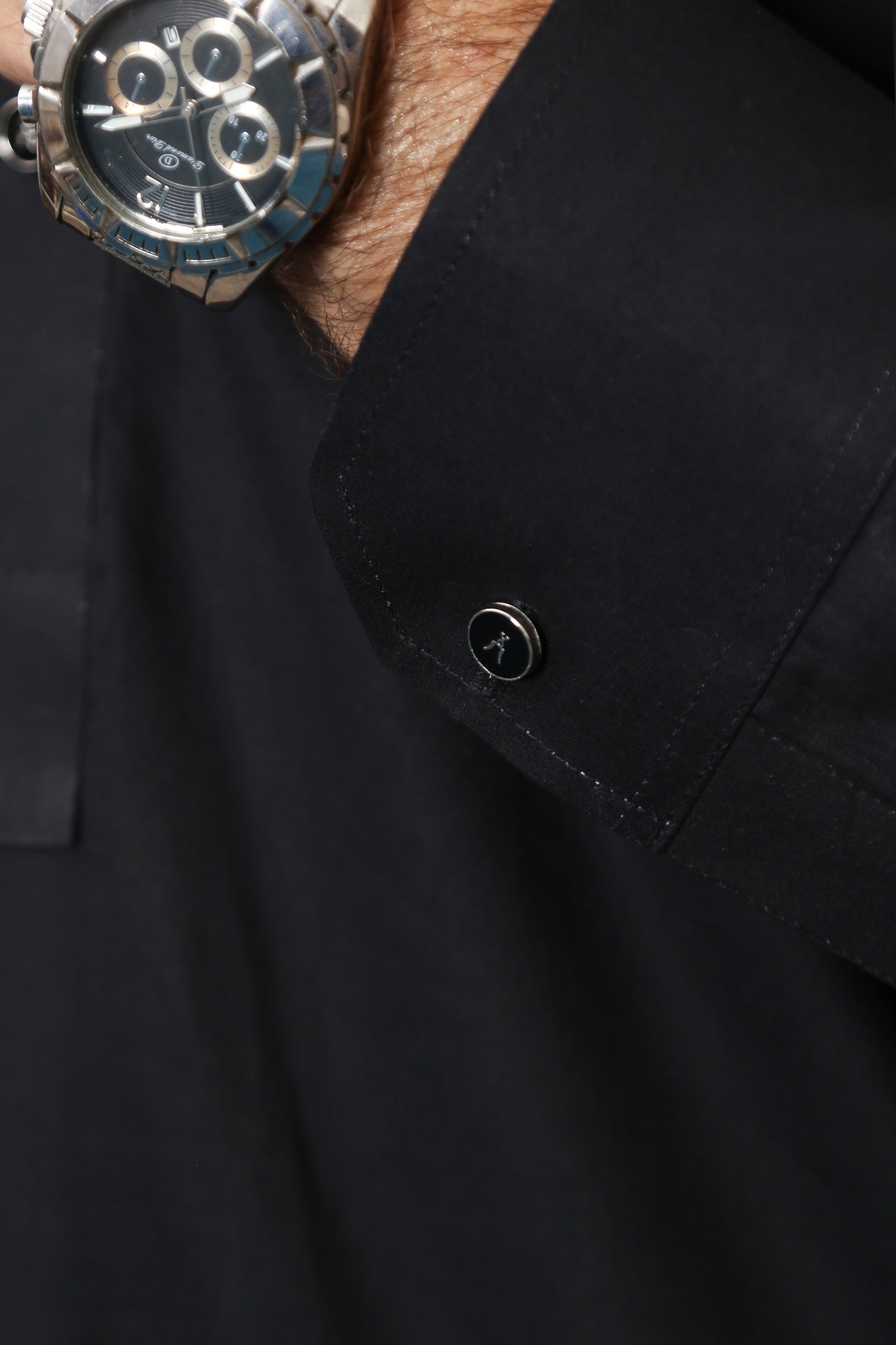 Expertly crafted from strong, black cotton fabric, this timeless Jet Black Men's Cotton Shalwar Kameez is a must-have for any wardrobe. Its classic design and strong fabric make it a versatile and durable choice for any occasion. Perfect for those who appreciate quality and style.