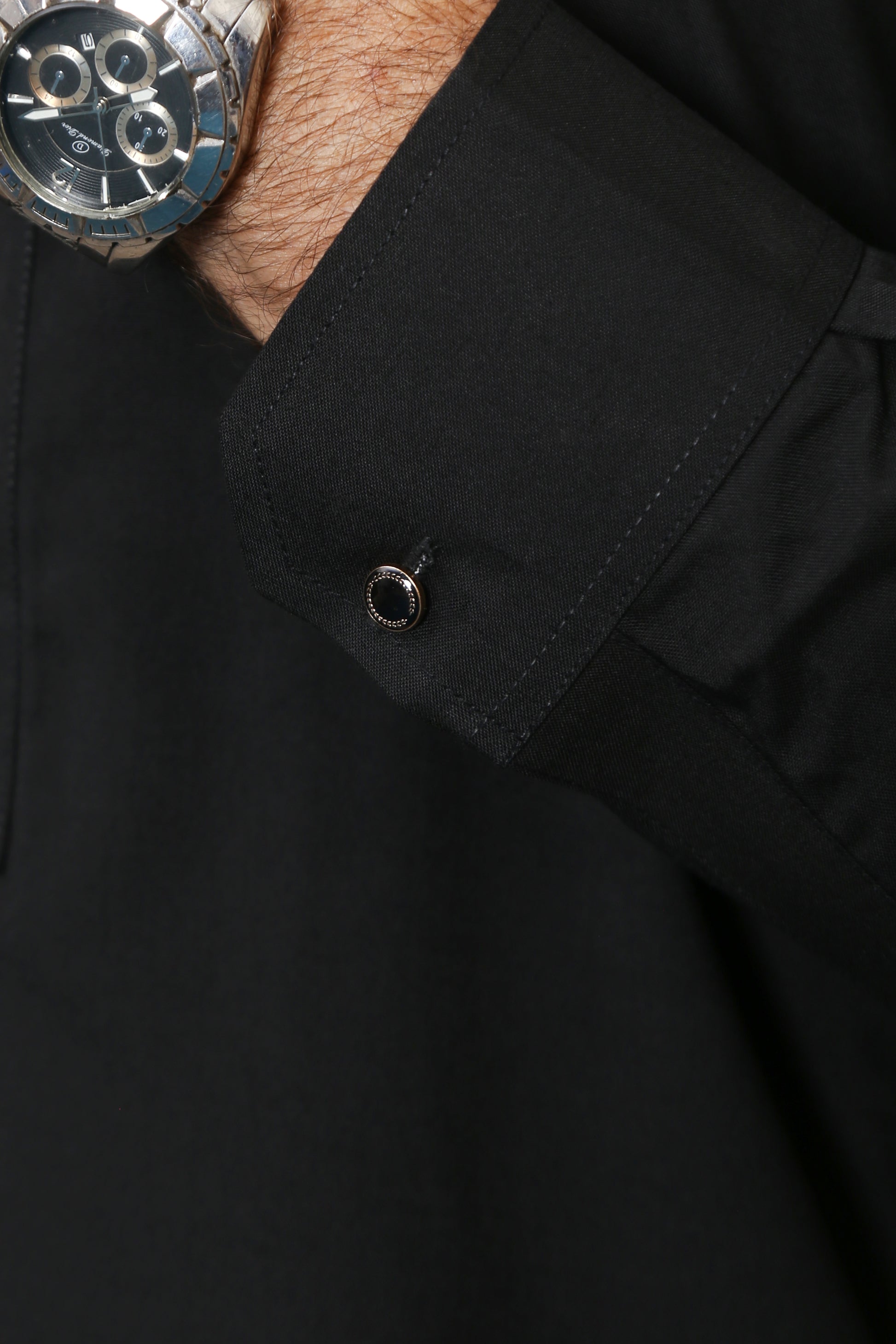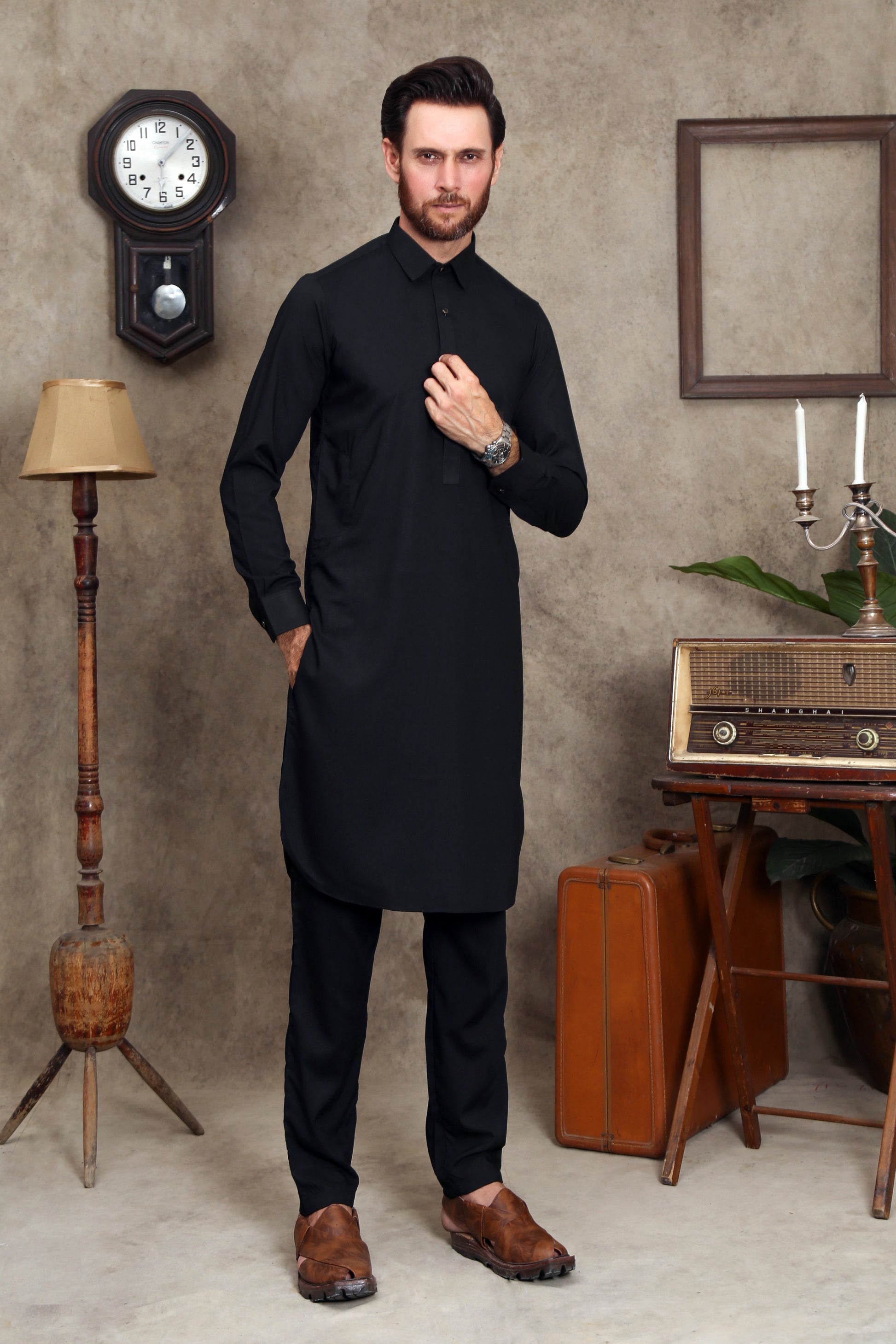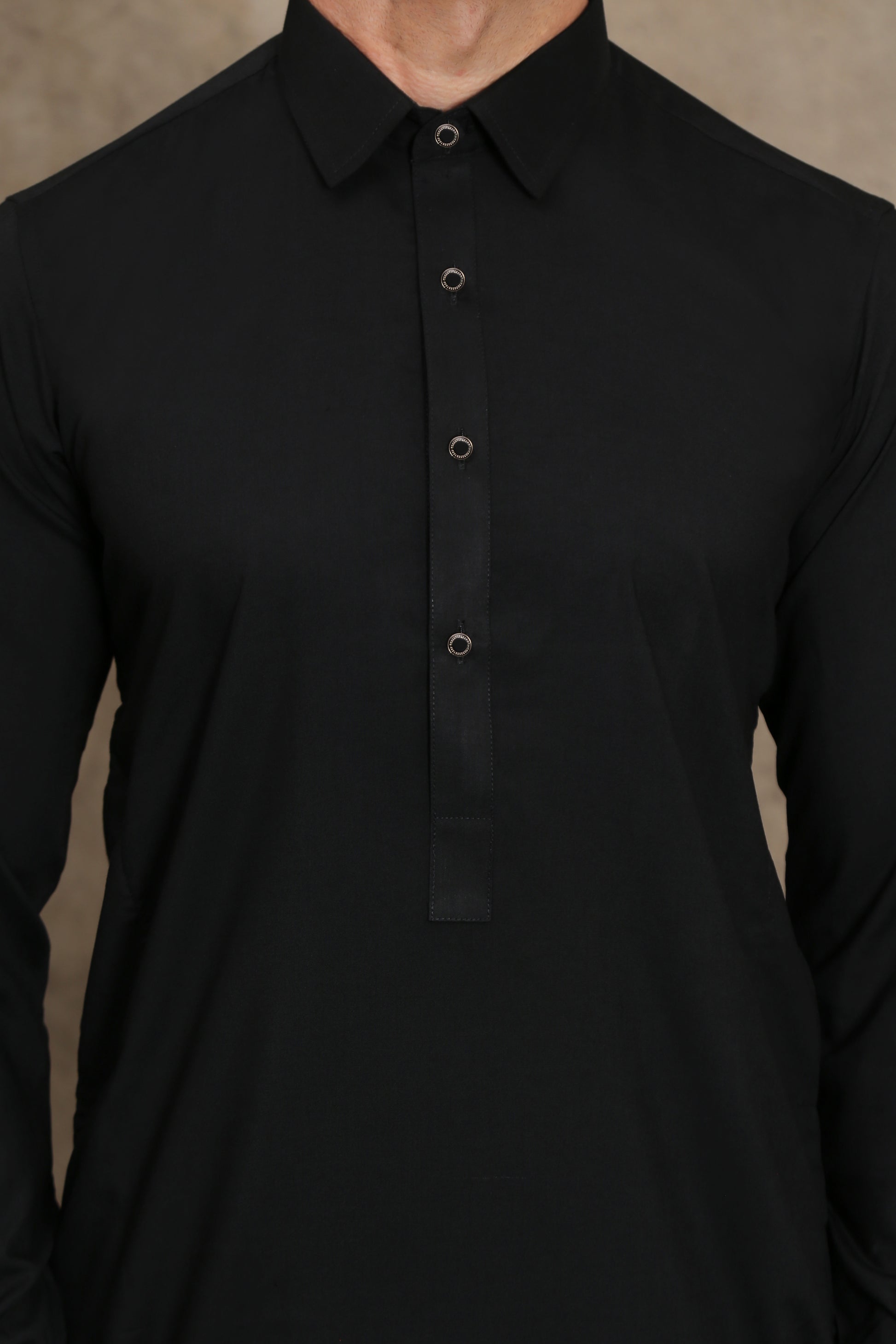 JET BLACK MEN'S WASH & WEAR SHALWAR KAMEEZ WITH COLLAR 2