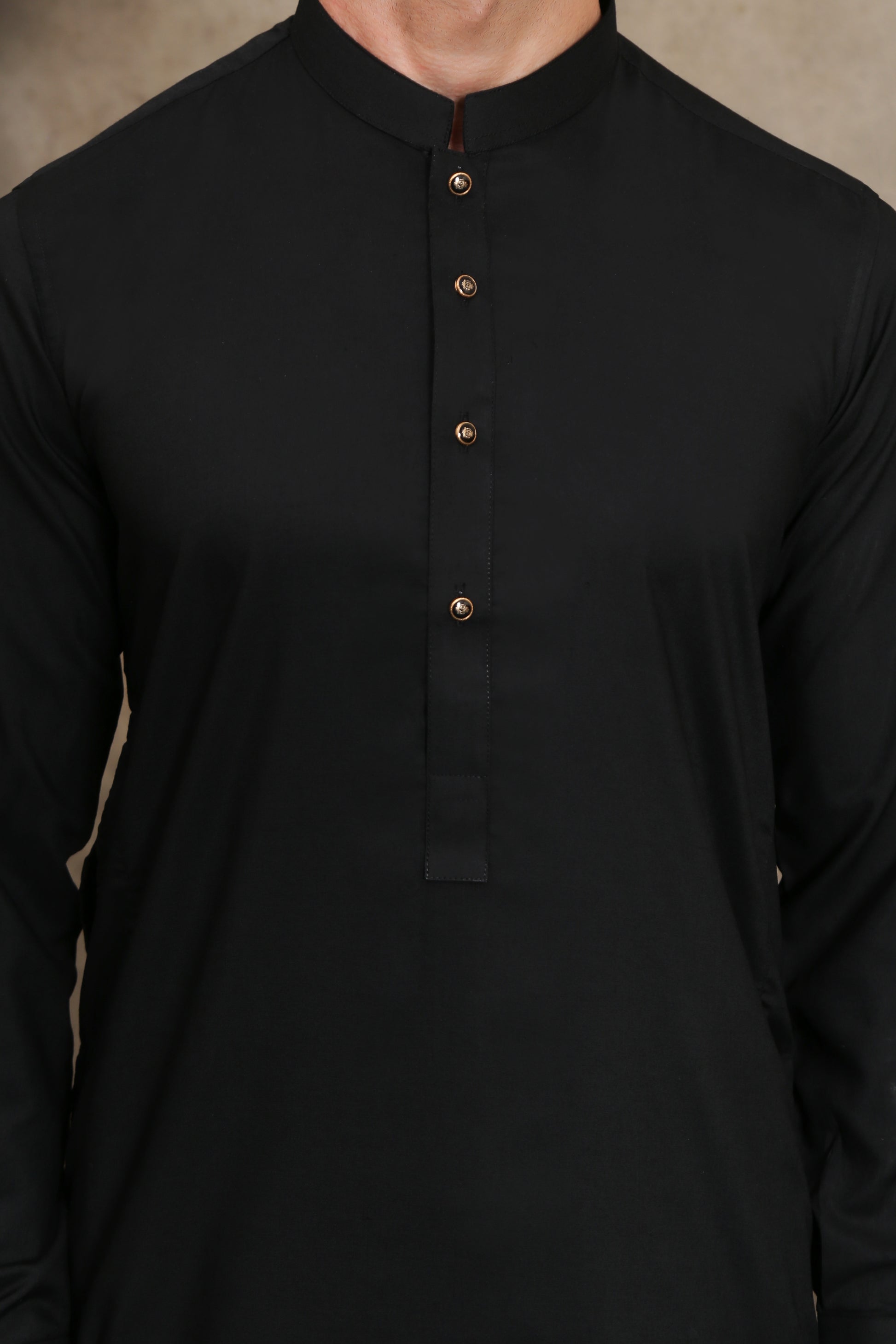 JET BLACK MEN'S WASH & WEAR SHALWAR KAMEEZ WITH SIMPLE BAN