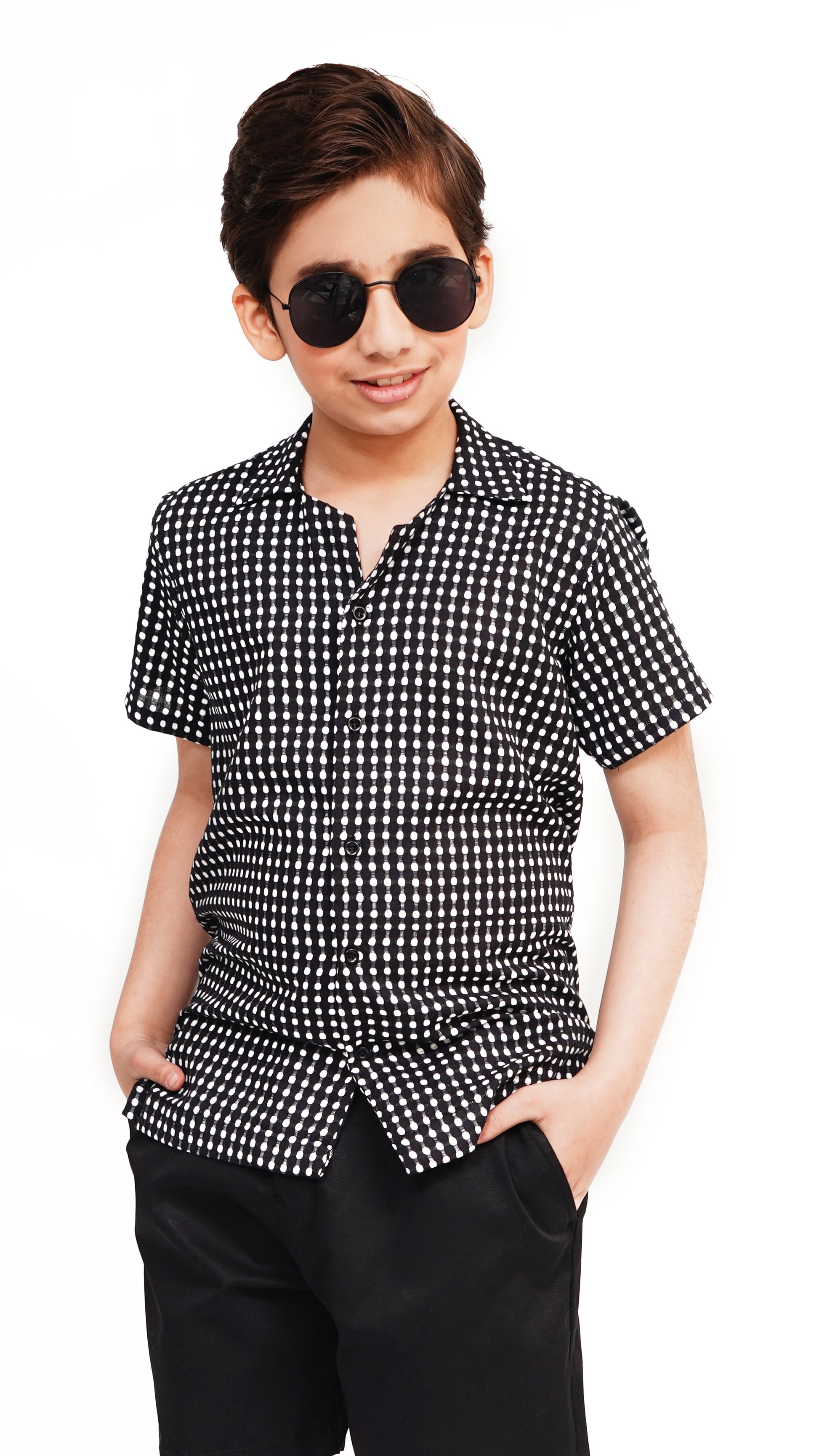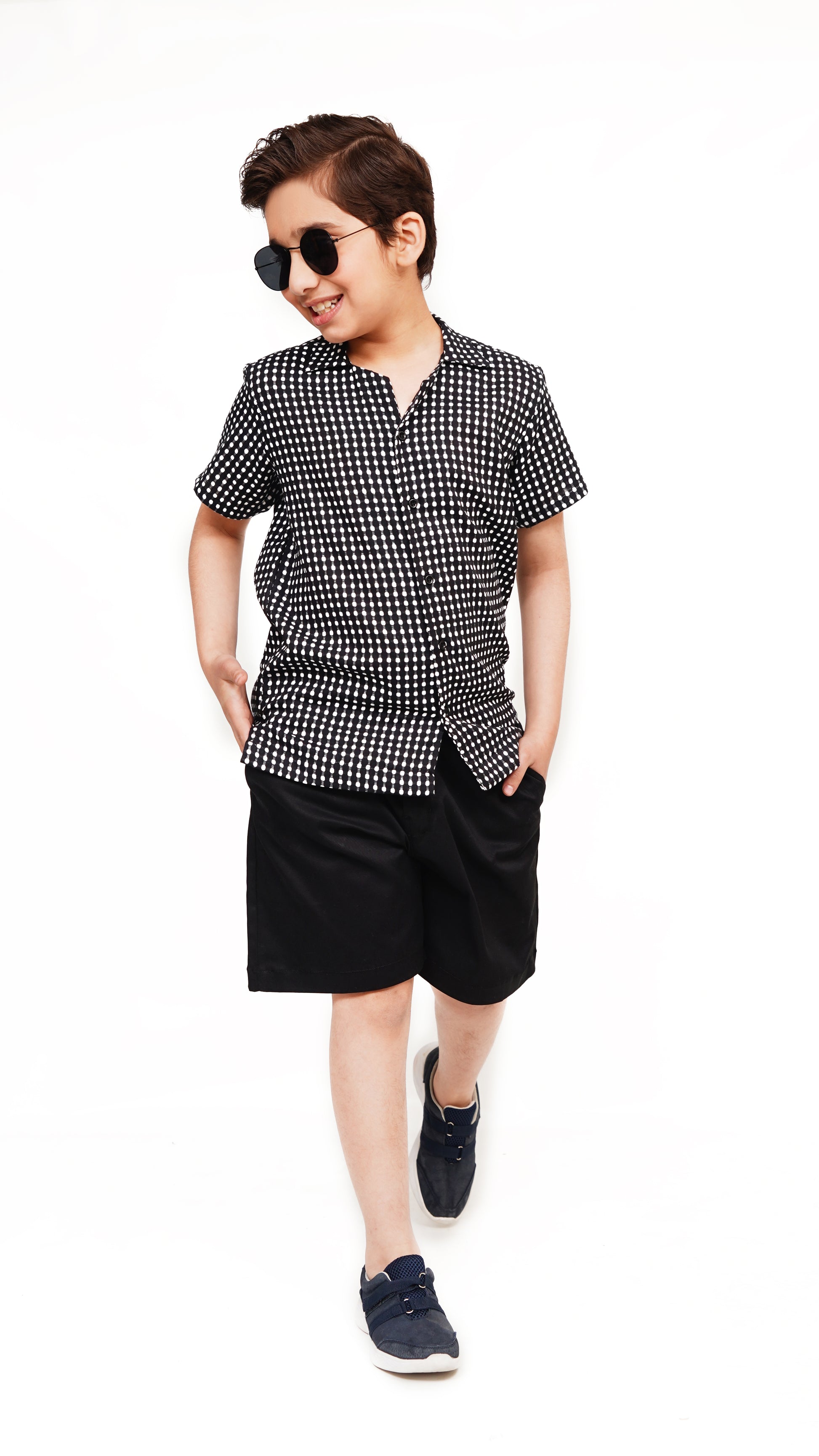 BLACK PRINT SHIRT AND BLACK TWIL NEEKER KID'S PAIR