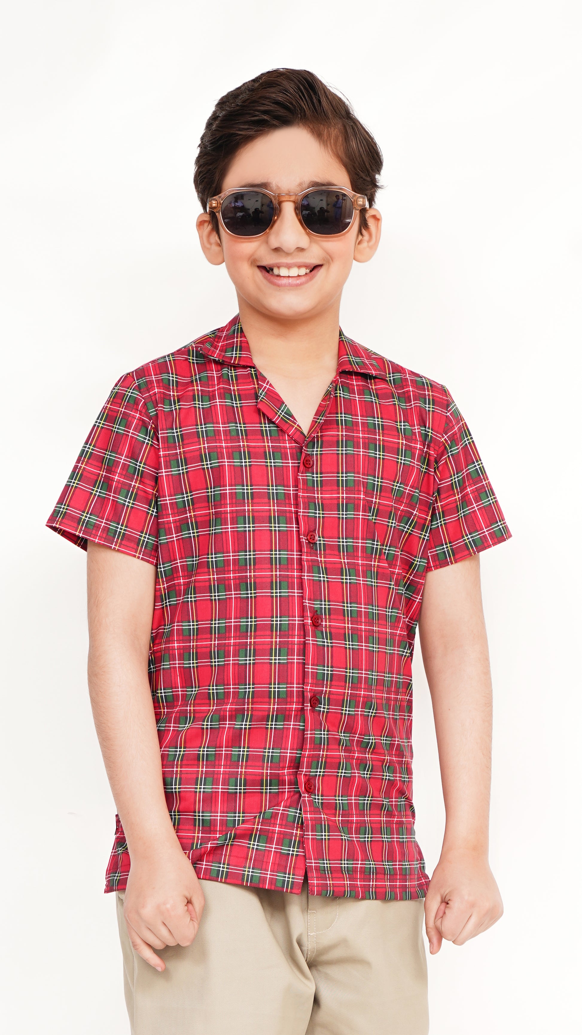 RED PRINT SHIRT AND TWIL NEEKER KID'S PAIR