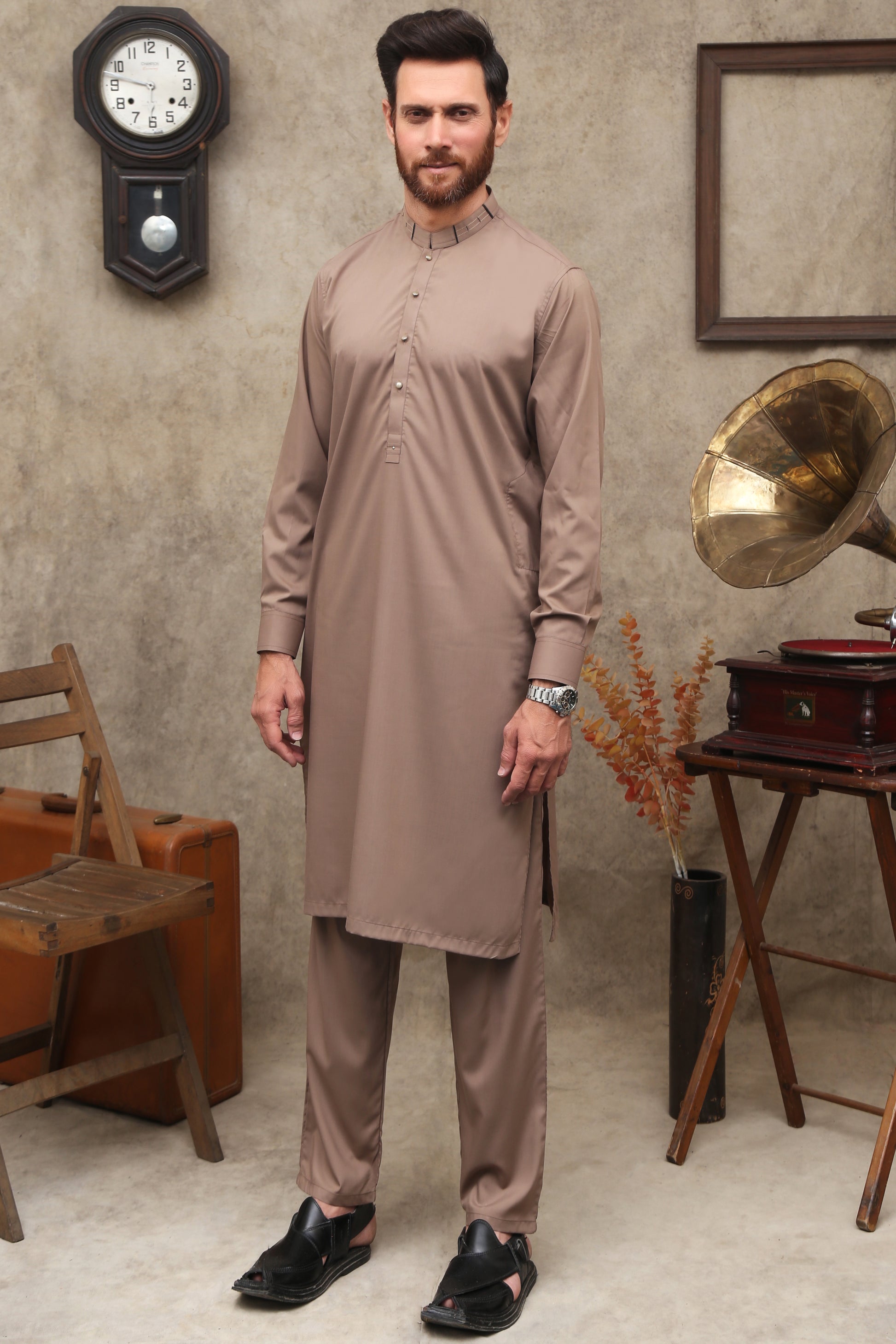 LIGHT BROWN MEN'S WASH & WEAR SHALWAR KAMEEZ