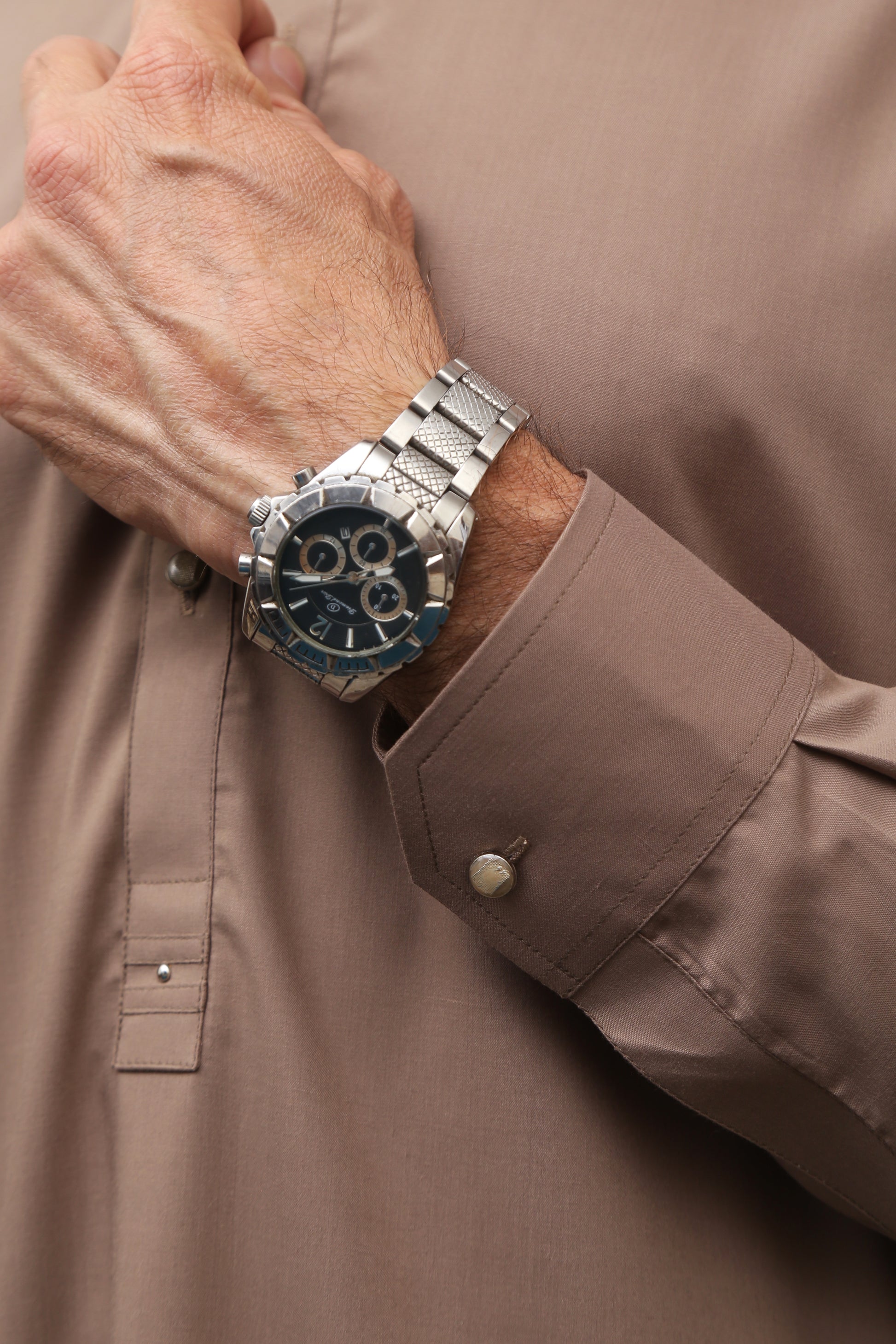 Experience comfort and style with our Light Brown Men's Wash & Wear Shalwar Kameez. Made with strong and durable Wash'n Wear fabric, this plain fabric ensemble features intricate thread work and a striking fabric contrast. Available in various colors, our Kameez Shalwar is perfect for any occasion.