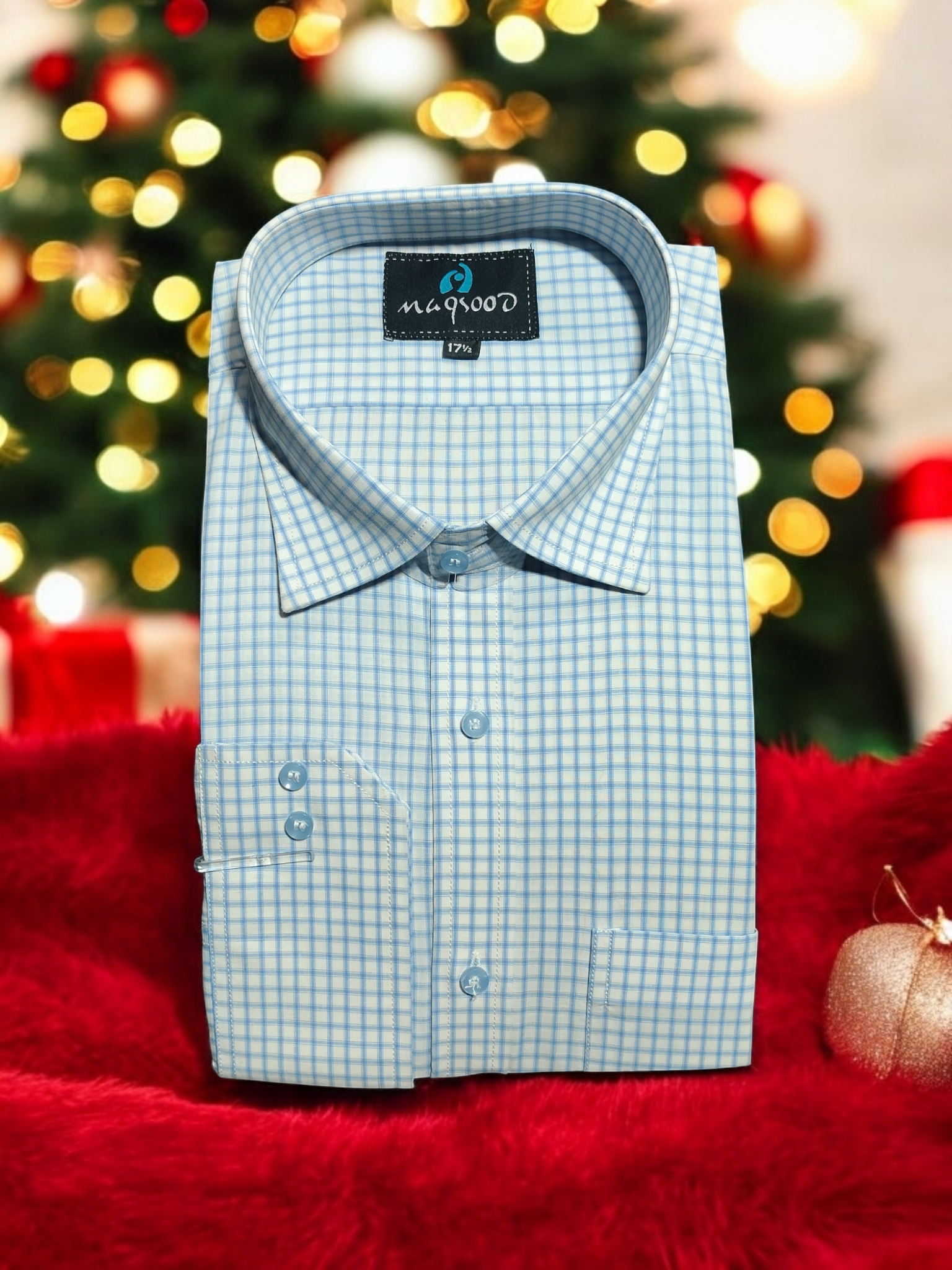 MEN'S LIGHT BLUE CHECK DRESS SHIRT