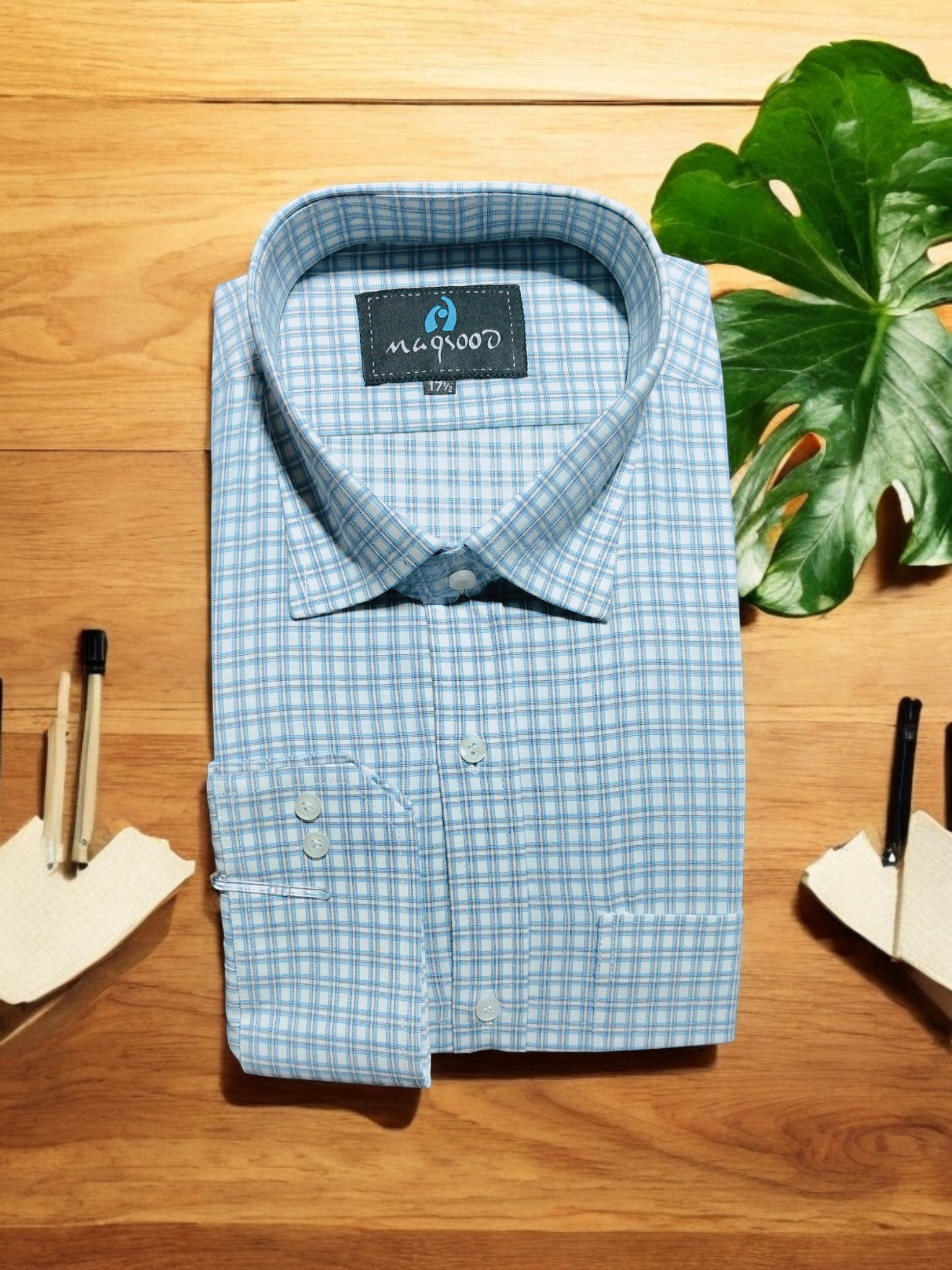 MEN'S LIGHT BLUE WHITE CHECK DRESS SHIRT