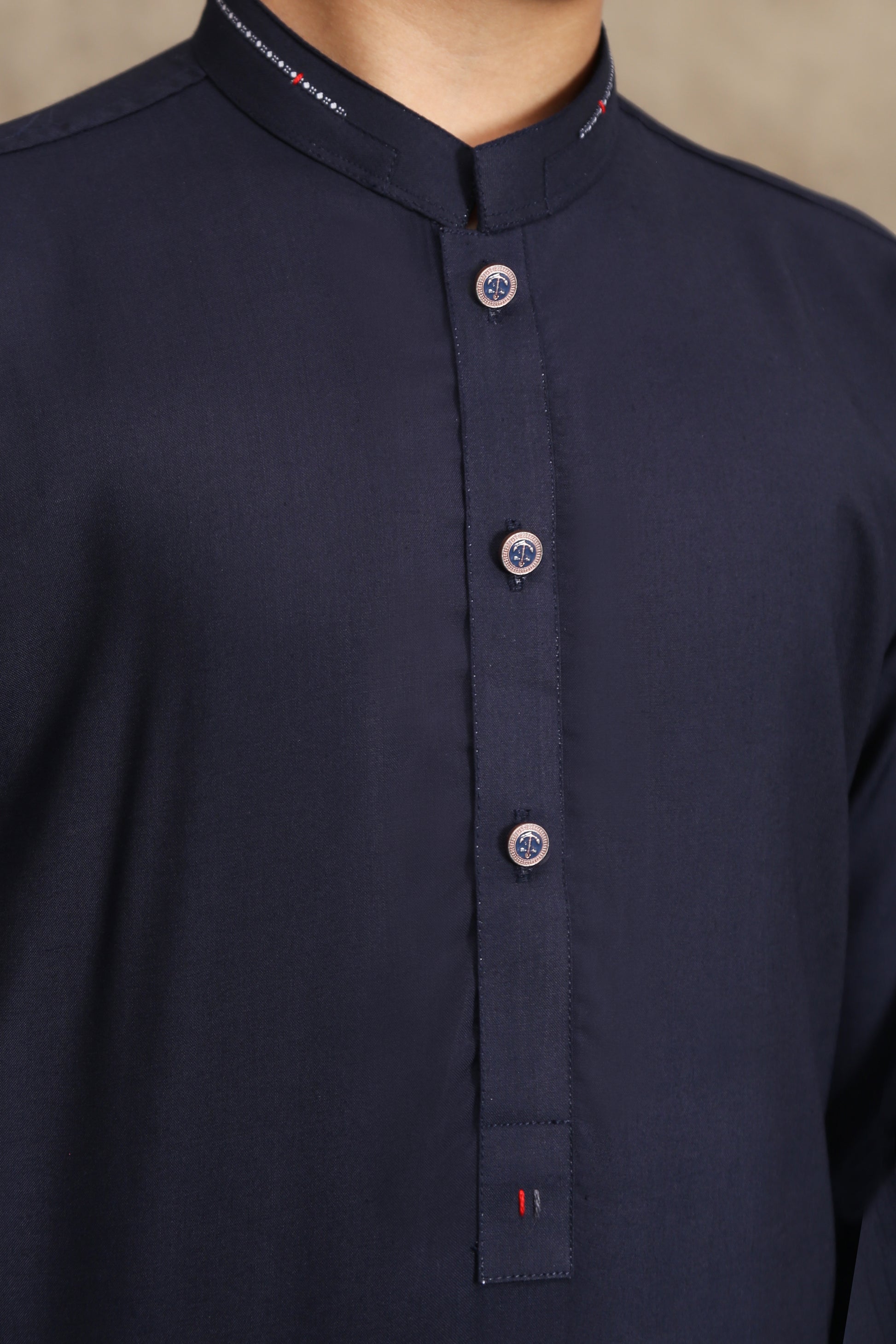 NAVY BLUE KID'S WASH & WEAR SHALWAR KAMEEZ WITH GOLDEN BUTTONS