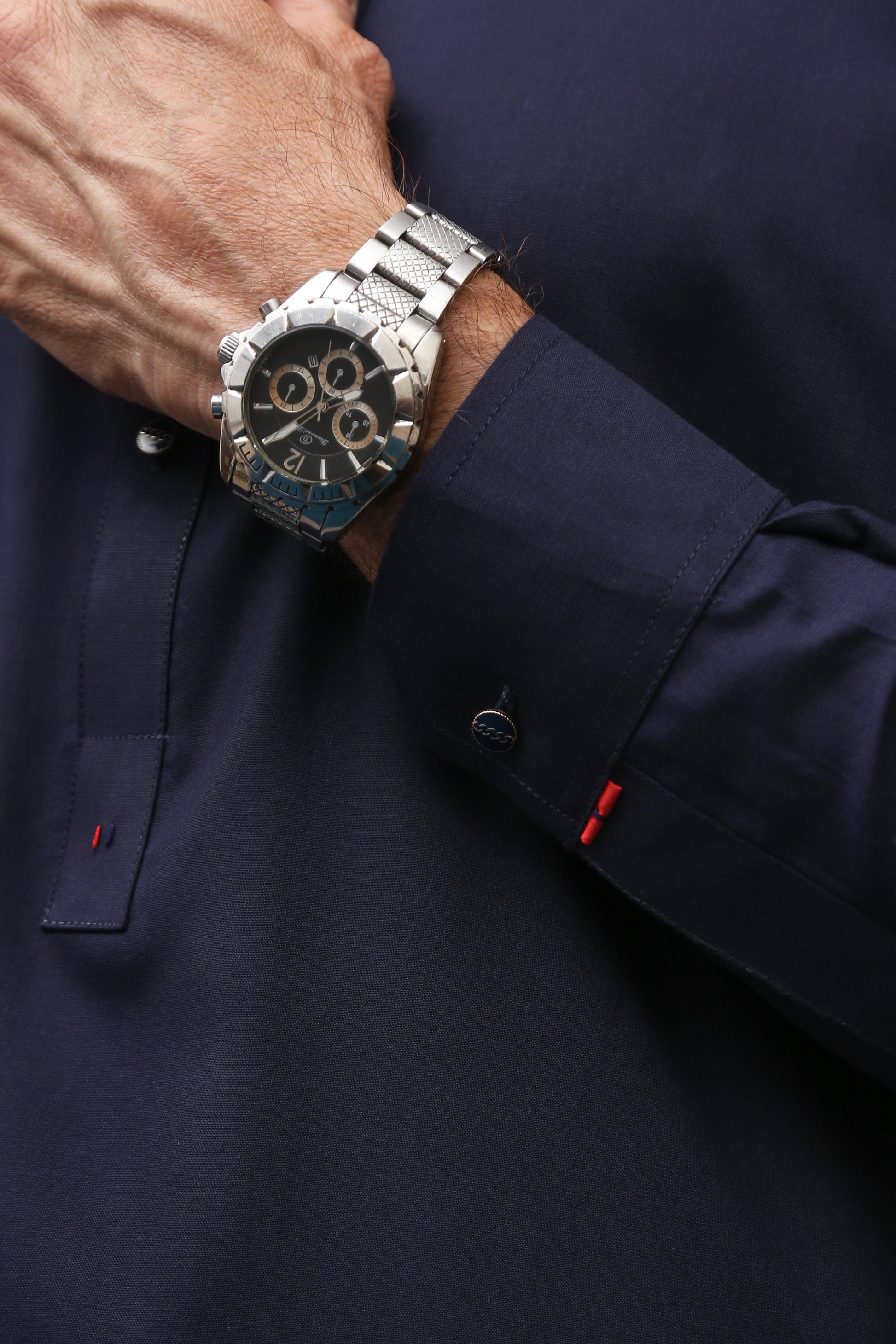 This navy blue Wash & Wear men's Shalwar Kameez is made from a strong fabric that is washer-friendly and has beautiful thread work. The contrast of red fabric adds an elegant touch to the plain fabric. Perfect for any occasion, this Kameez Shalwar is in high demand.
