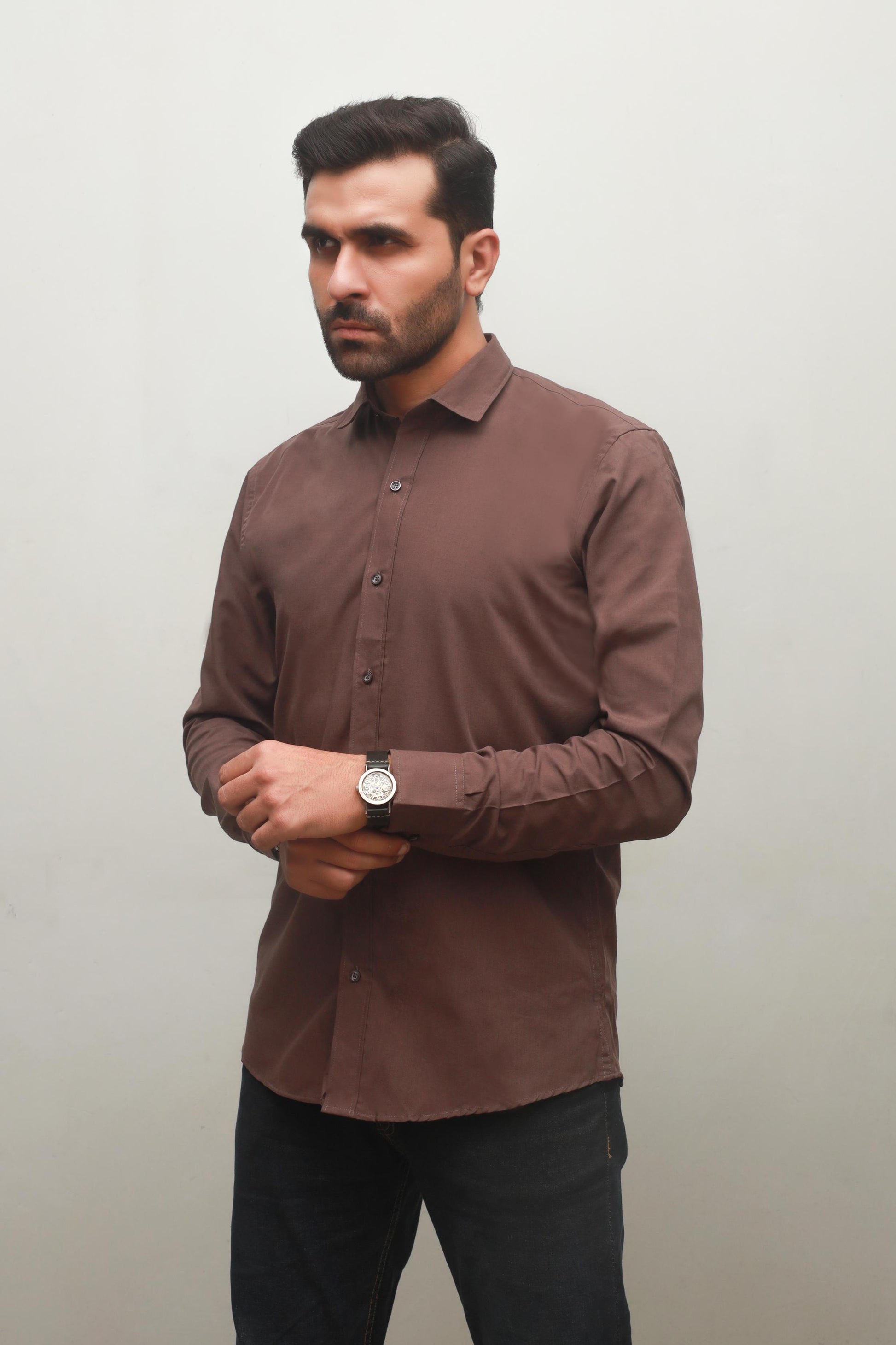 MEN'S PLAIN BROWN COTTON CASUAL SHIRT