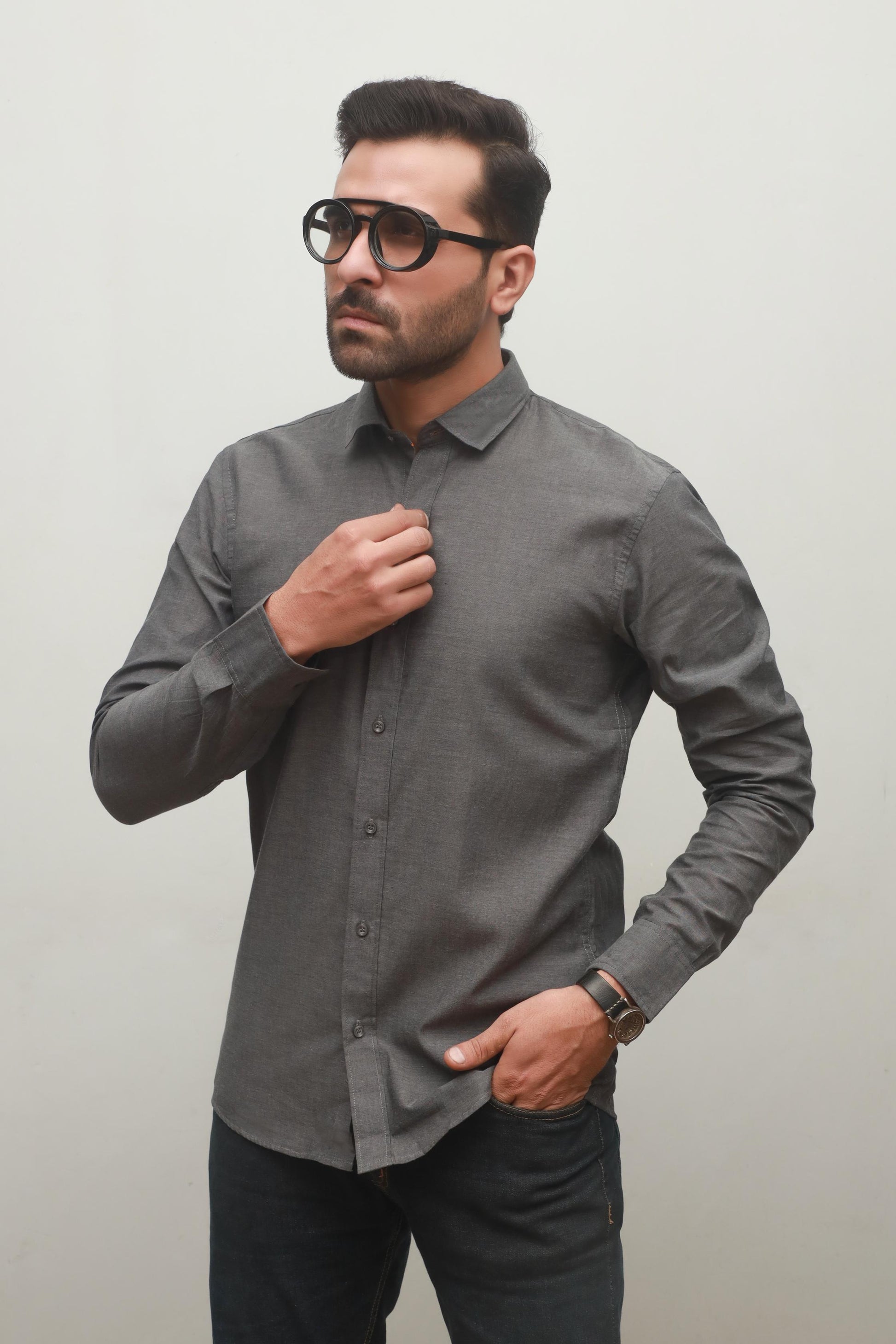 MEN'S PLAIN GREY CASUAL SHIRT