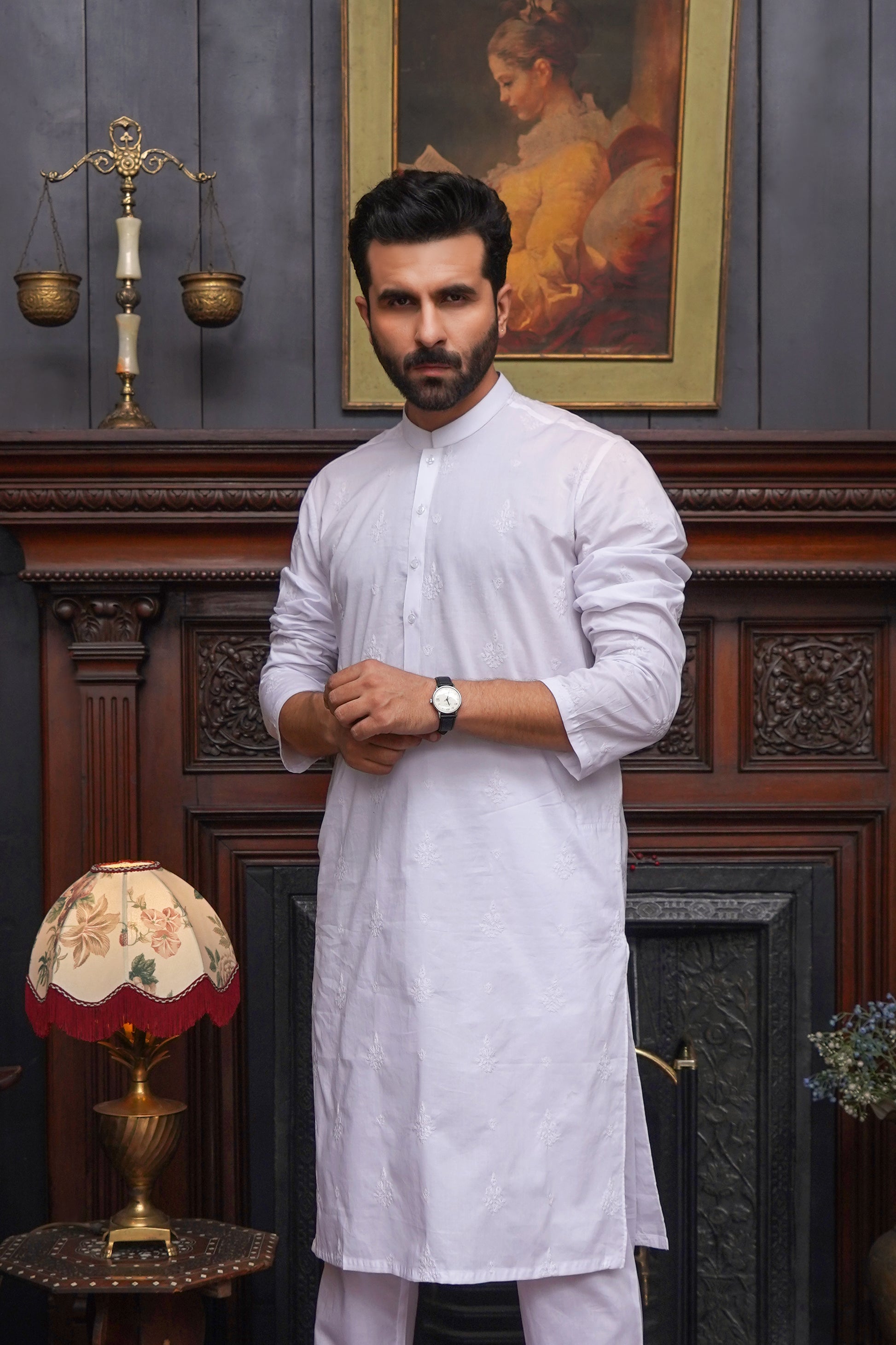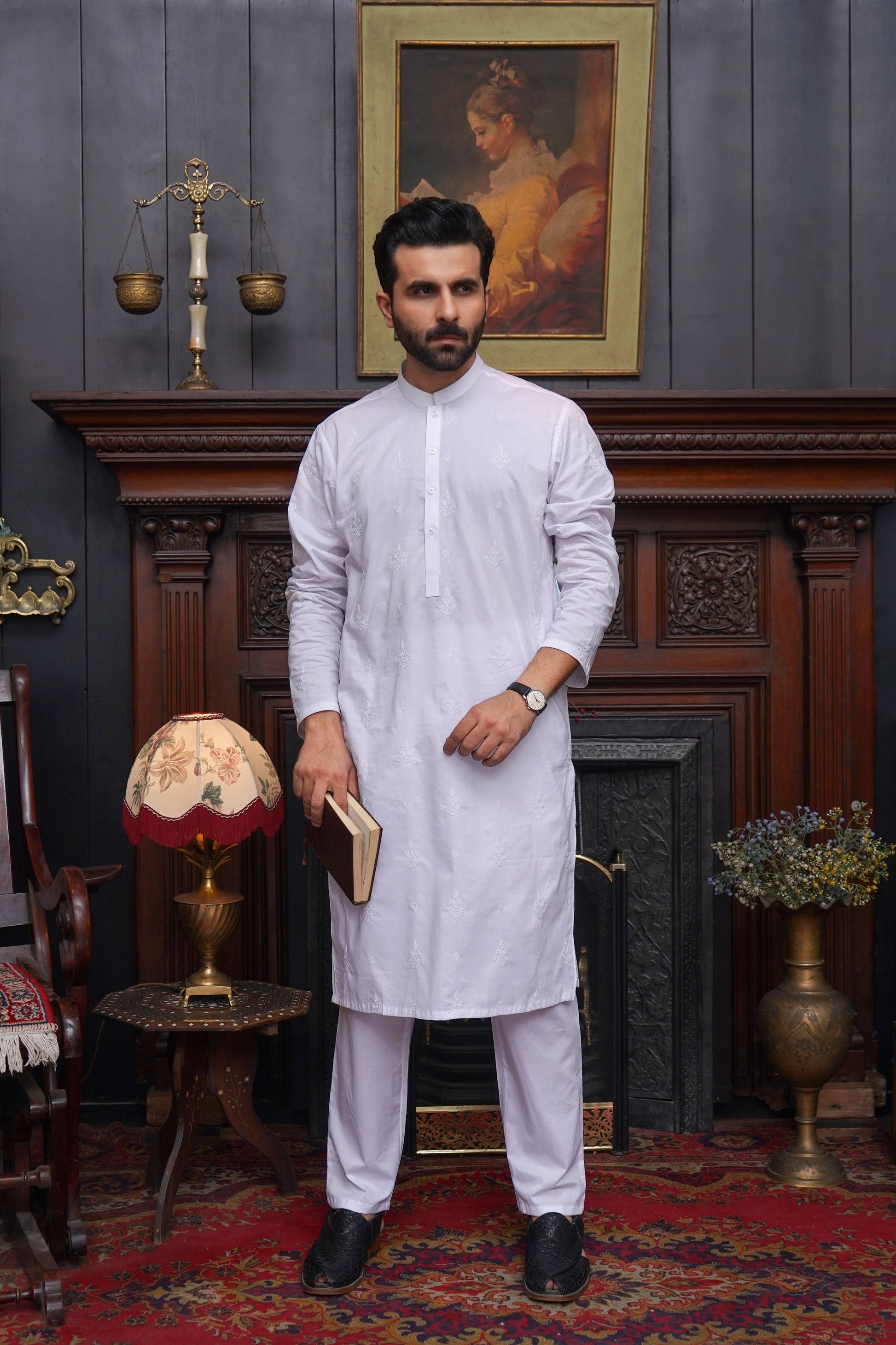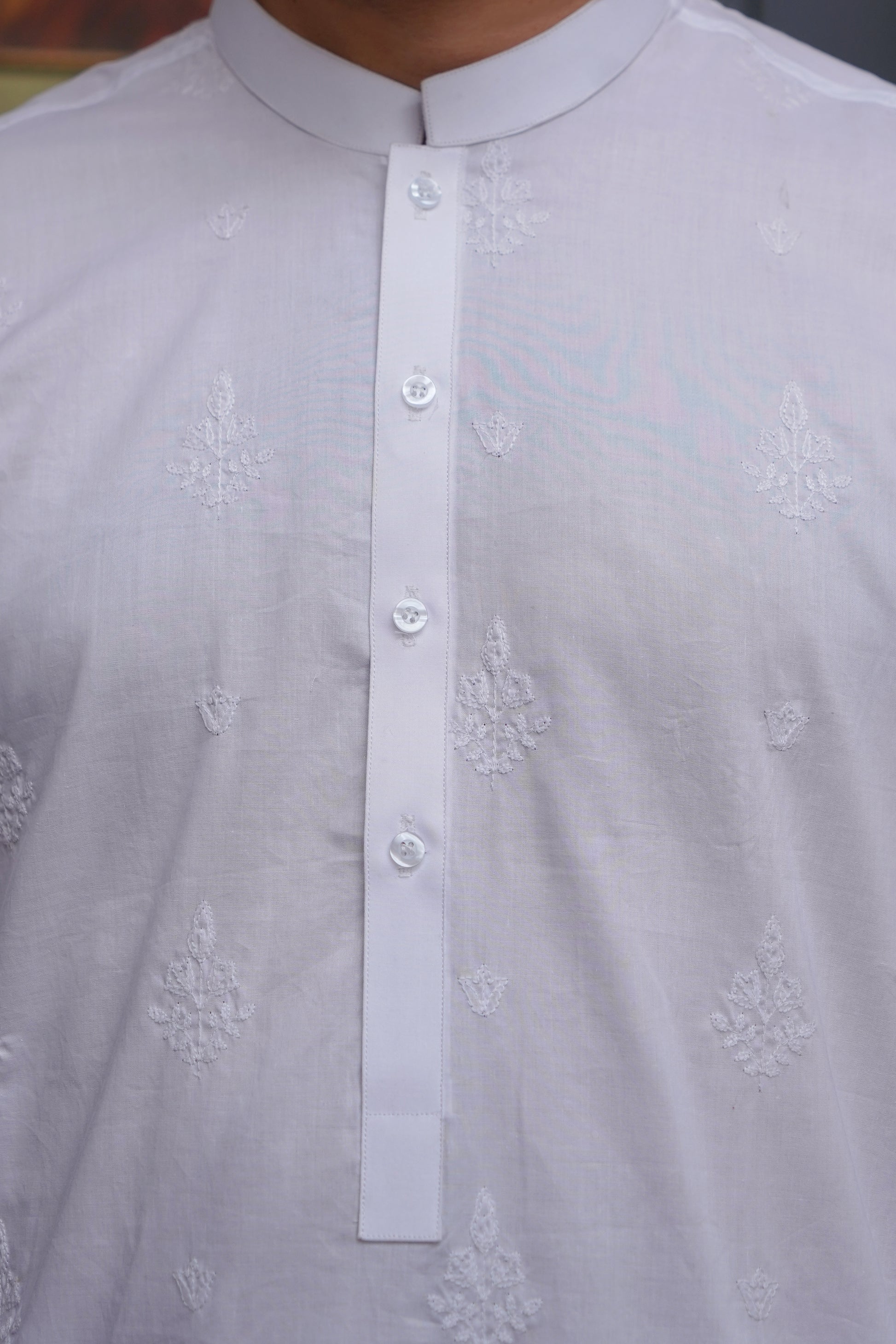WHITE COTTN EMBROIDED MEN'S KAMEEZ SHALWAR