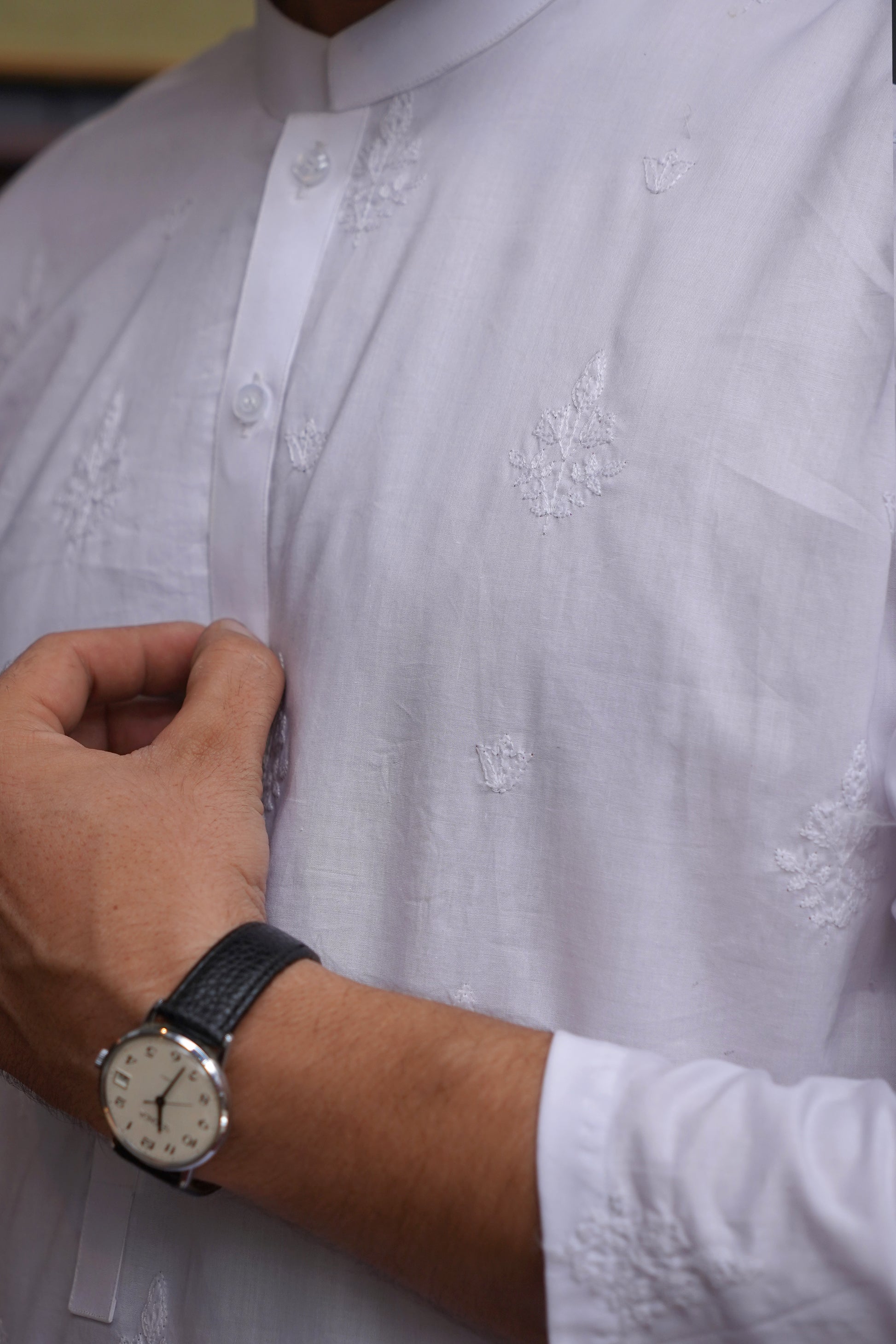 Indulge in comfort and elegance with our WHITE COTTON EMBROIDED WASH & WEAR MEN'S SHALWAR KAMEEZ. This exquisite outfit features intricate chicken embroidery, adding a touch of sophistication that makes it perfect for special occasions.